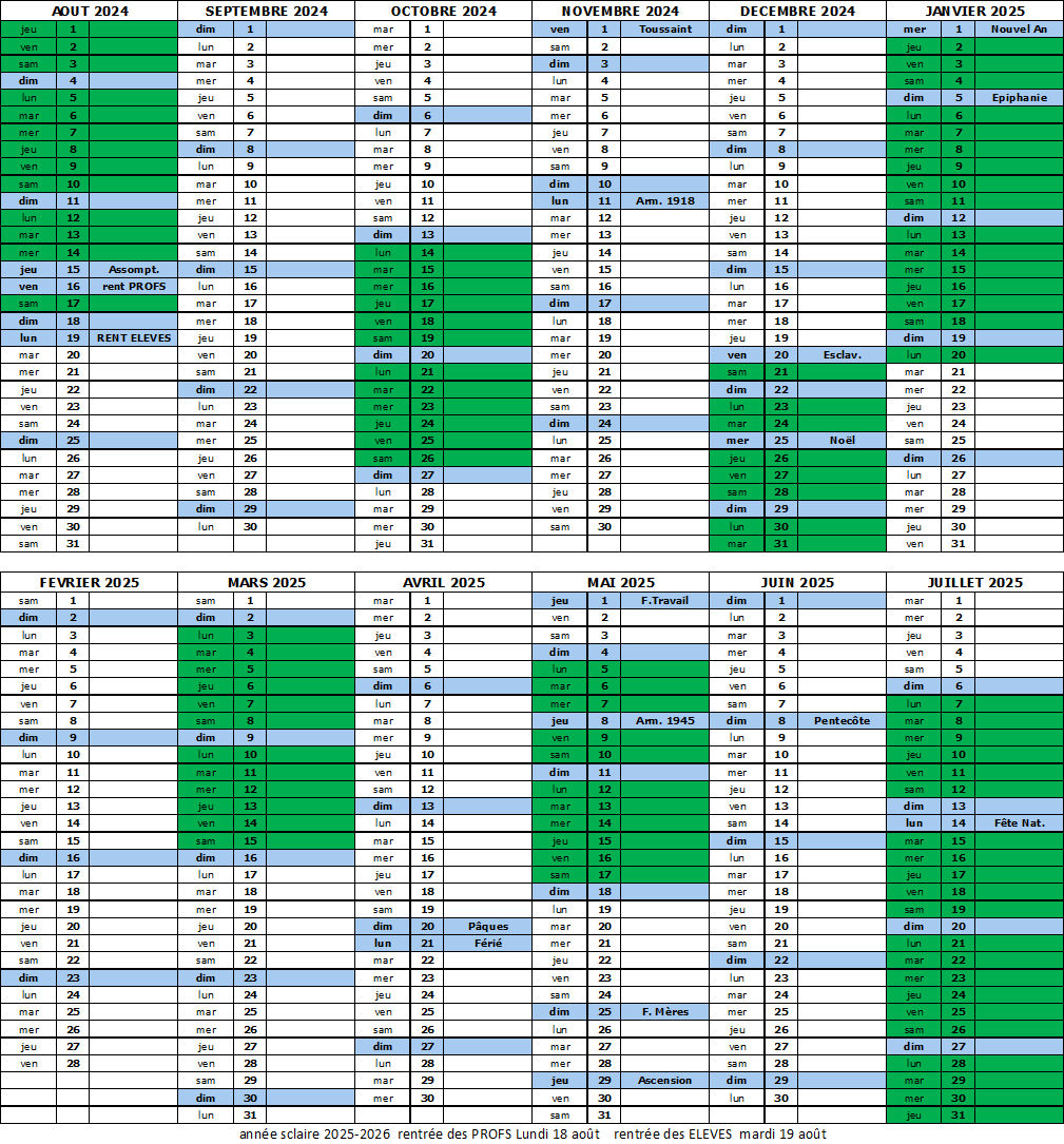 Calendriers 2024-2025