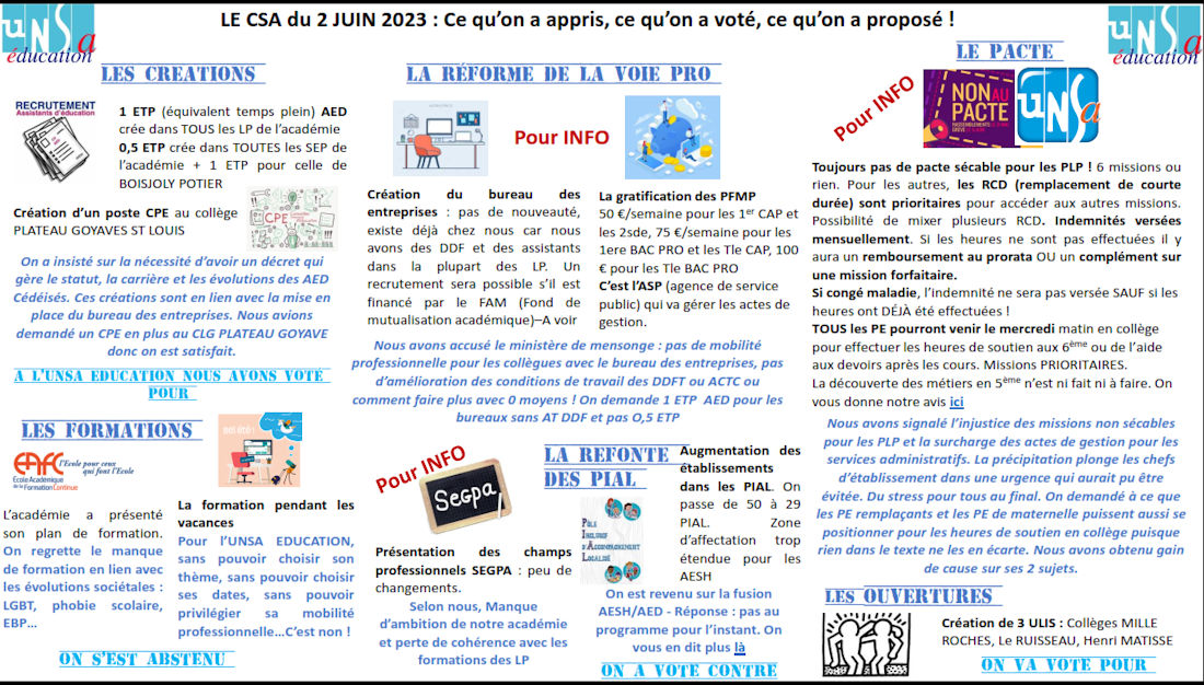 Compte Rendu CSA du 2 juin