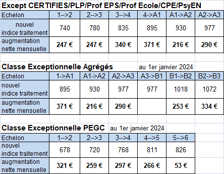 la Hors Classe (indice 657) est promu au 1er