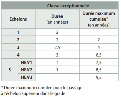sur 1 échelon et 2 échelons spéciaux (HEA et