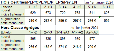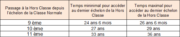 à la Hors Classe. Le tableau suivant indique