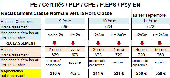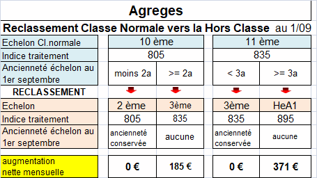 reclassement à la Hors classe au 1er